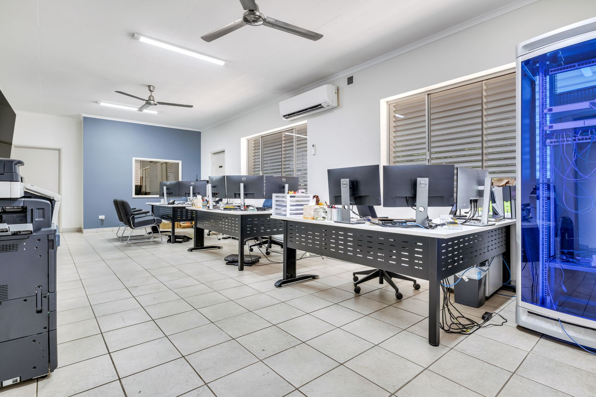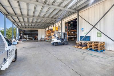 The facility includes comprehensive 285m2 office space featuring a reception area, boardroom, training facilities, and ample staff amenities. With a total secure land area of 2,720m², the site provides concrete hardstand at the front and on-site parking, ensuring convenient access and utility.