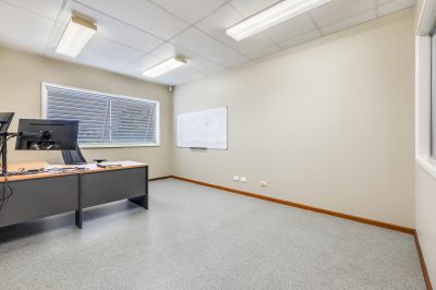 Situated on a generous 3,420m² allotment, it features a well-appointed 130m² office space, including a reception area, manager's offices, and a lunchroom, complemented by a further 110m2 mezzanine level currently disposed as partitioned and airconditioned offices.